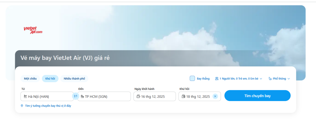 Traveloka là nền tảng du lịch trực tuyến nổi bật tại Đông Nam Á, mang đến giải pháp toàn diện giúp người dùng dễ dàng lên kế hoạch và đặt các dịch vụ cho chuyến đi. Với Traveloka, bạn có thể đặt vé máy bay Vietjet giá rẻ, đặt phòng khách sạn, thuê xe, tham gia các tour trải nghiệm và dịch vụ đưa đón sân bay chỉ trong vài thao tác đơn giản. Hệ thống liên tục cập nhật lịch trình và giá vé mới nhất, giúp hành trình của bạn tiết kiệm thời gian và chi phí.
